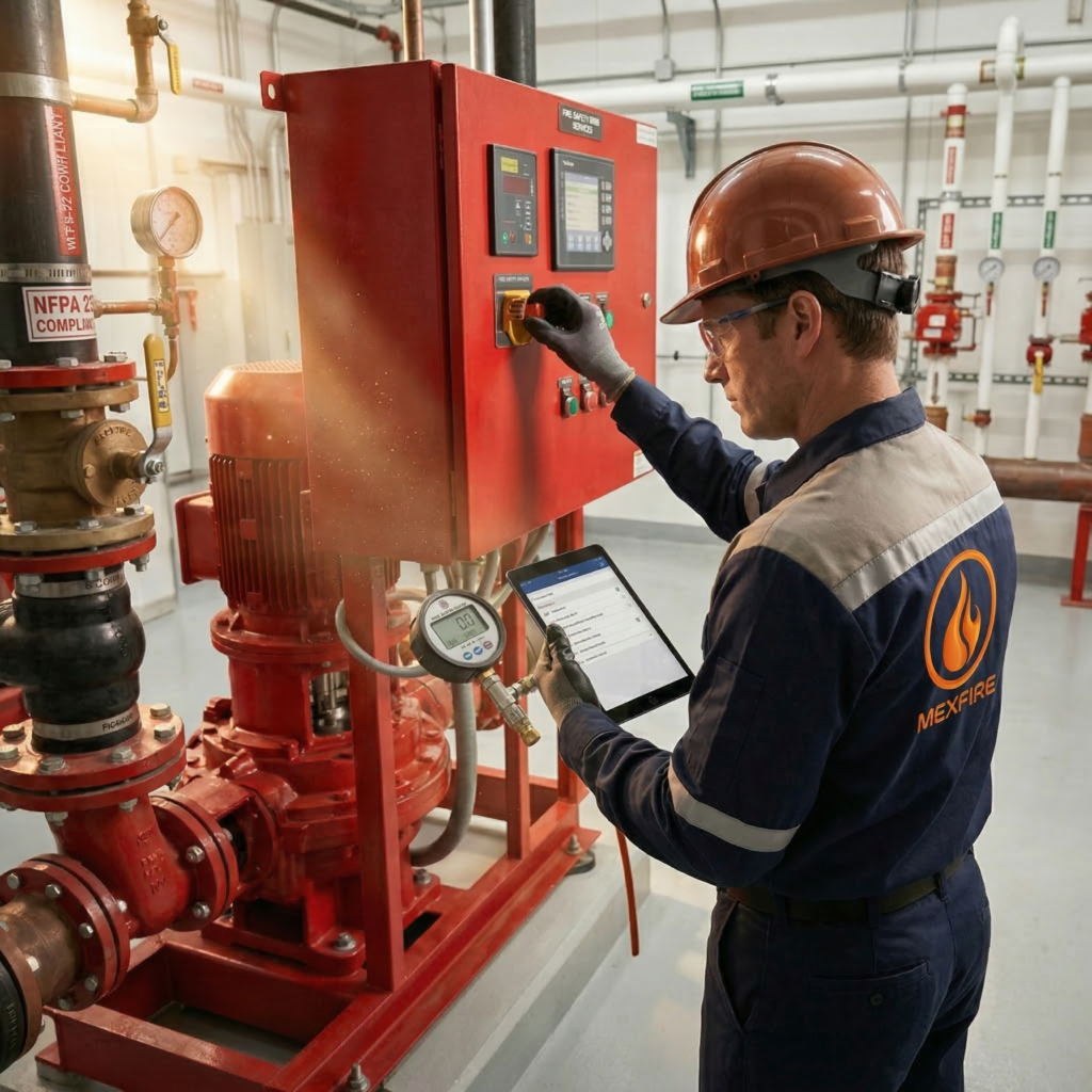 En Grupo Mexfire, ofrecemos servicios de mantenimiento preventivo, correctivo y predictivo para garantizar el funcionamiento continuo y seguro de tus sistemas contra incendio, bajo estándares NFPA, NOM y lineamientos internacionales.